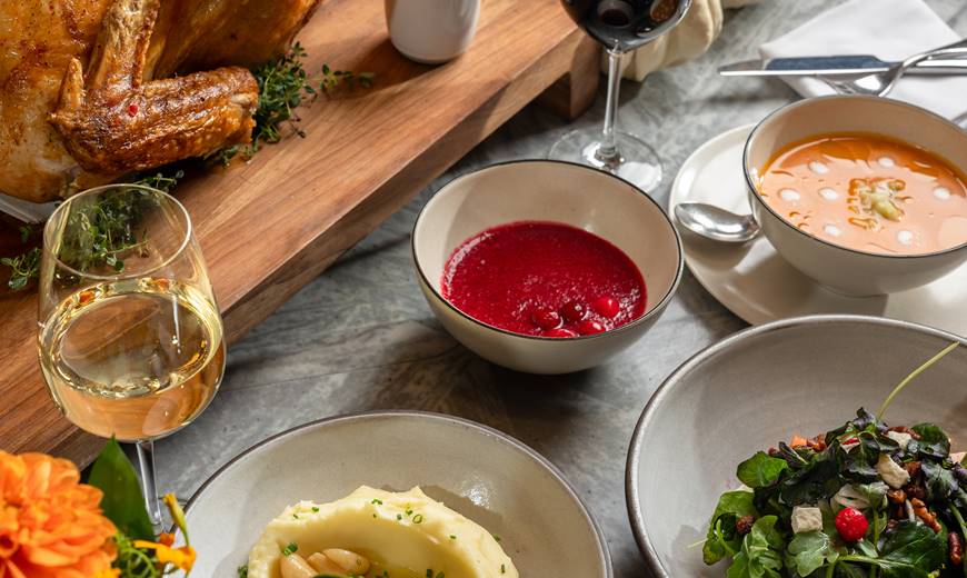 Celebrate the season with family and friends at Lyle’s. Enjoy a refined three-course Thanksgiving menu, featuring butternut squash soup or autumn salad to start, herb-roasted turkey with all the trimmings for the main course, and pumpkin pie or chocolate brownie to finish. Available for lunch and dinner.